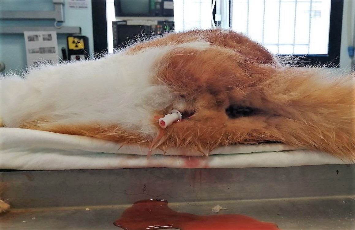 Dipende dalla gravità dell’ostruzione e dalle condizioni cliniche dell’animale. Alcuni testi riportano di rimuoverlo dopo 24-48 ore, altri, solo quando la concentrazione delle urine ritorna a essere fisiologica. Noi ci basiamo sulla clinica e sulla risposta del paziente: se dopo la disostruzione le urine si presentano fin da subito chiare, rimuoviamo il catetere dopo 24-48 ore, se invece le urine restano molto rosse, i reni hanno sofferto molto e le condizioni sono critiche, lo lasciamo in sede più giorni.
