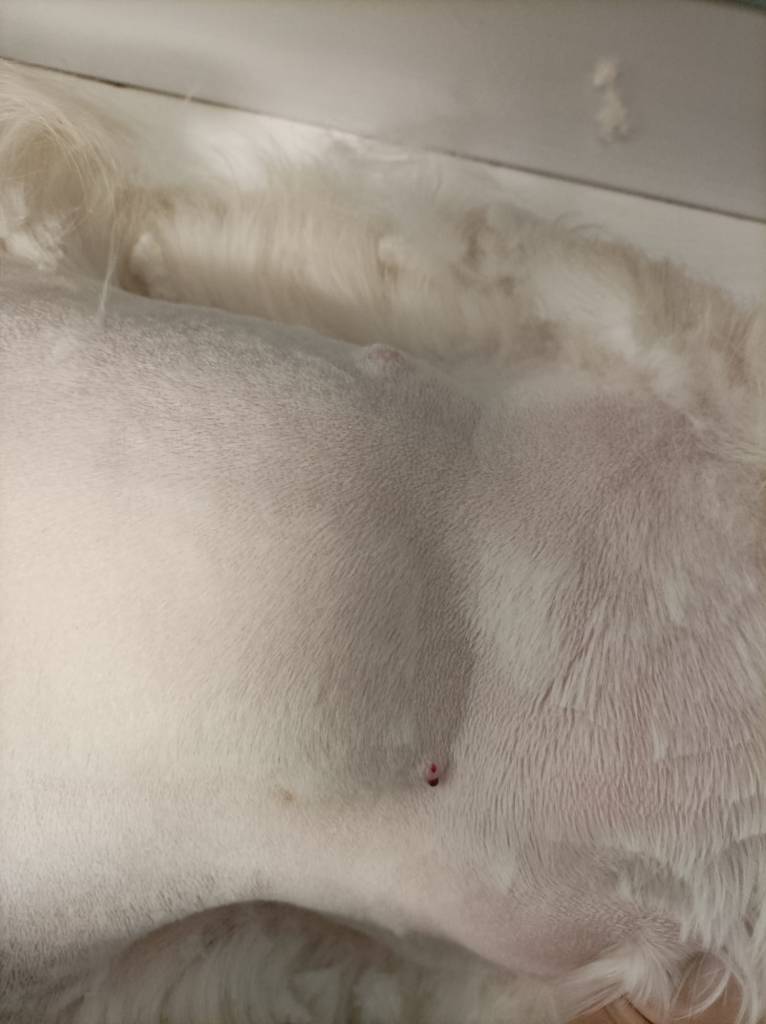L’esito è stato ottimo: l’esame citologico di fegato e milza è risultato negativo per la presenza di metastasi ed entrambi i mastocitomi, classificati come cutanei a basso grado, sono stati rimossi in toto con margini chirurgici ampi e puliti. Il linfonodo è stato classificato come NH1 premetastatico, ovvero sono stati trovati sì dei mastociti all’interno, ma non in numero tale da richiedere la chemioterapia. Nel linfonodo è stato trovato inoltre il colorante che era stato iniettato prima della chirurgia, a conferma che quella zona del corpo era drenata da quel determinato linfonodo.